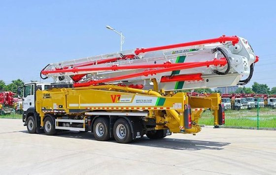 Technical characteristics of 58 METER concrete pump XCMG HB58V concrete pump with XCMG SCHWING Germany technology. Theoretical capacity: 170 m3/h Boom. 6-section folding boom "6 RZ" Max. boom installation height: 57.5 m Reaching depth: 40.5 m Stacking boom turning radius: 52.5 m Lubrication mode: Automatic lubrication Control method: remote control and manual